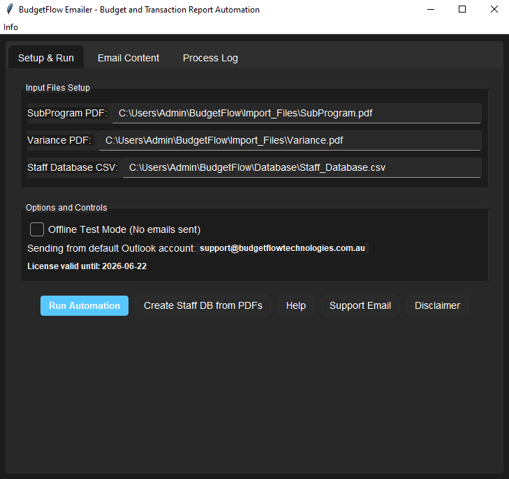 Designed specifically for Cases21 Transaction and Variance PDFs, BudgetFlow Emailer intelligently processes your documents, automatically extracting and segmenting reports by program. It then securely dispatches these individualized reports to the correct Heads of Faculty, all with just a few clicks.